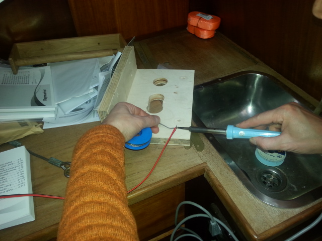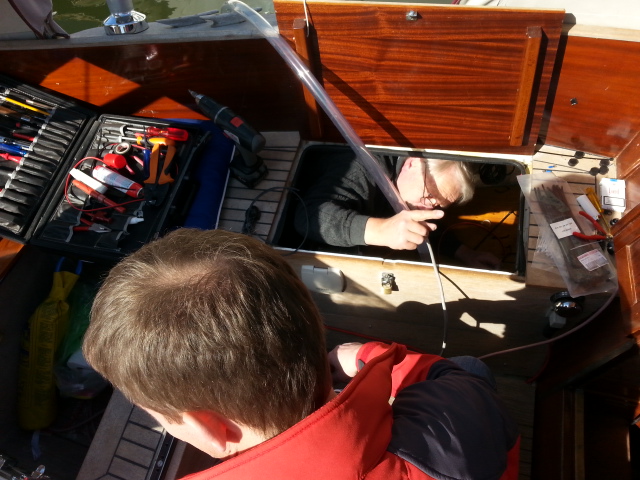 Der helle Schlauch gehört zur Bilge-Pumpe.