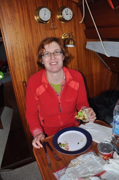 Nach dem Frühstück herrscht Windstille und wir beschließen, erst nach einer Waschladung zu starten. Die Tagesprognose von Windfinder kündigt ab 11.00 Uhr zumindest 2 bis 3 Bft an. So kommt es dann auch: Ein leichtes Kräuseln des bislang platten Wassers erzeugt Hoffnung auf schönes Segeln. Wir bereiten alles vor und nachdem die Wäsche fertig ist, geht es los. Mit uns verlässt auch die deutsche Yacht den Hafen. Den Skipper hatten wir am Vorabend kennengelernt. Er hatte uns bereits in Simrishamn gesehen, wir ihn dann auf Hanö. Er berichtet vom Spi Segeln – das sei für die kommenden Tage das Richtige. Wir haben unseren Spi nach langem Hin und Her mitgenommen, obwohl wir damit noch keine Praxis haben. Und da wir das bereits abgestimmte Training dann doch nicht durchgeführt hatten, bleibt unser Spi eben unten. Wir setzen bereits beim Auslaufen das Großsegel und anschließend das Vorsegel. So auch die andere Yacht. So segeln wir kurze Zeit parallel Richtung Norden. Die andere Yacht setzt jedoch bald den Spi und zieht ab dann vor uns durch das Wasser. Tja, hätten wir… Ralf, nochmals Danke für Dein Angebot!