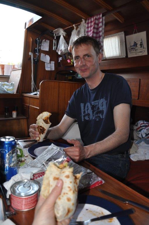 Die Segel bleiben so wie sie sind und wir aktivieren den Autopiloten. So haben wir Zeit zum Lesen und Faulenzen. Wir kreuzen das Fahrwasser des Kalmarsundes, da wir unser Etappenziel auf Öland gesetzt haben. Mörbylånga oder Färjestaden etwas weiter nördlich hatten wir beim Auslaufen geplant. Um 16:30 Uhr sind wir noch südlich von Mörbylånga. Bis Färjestaden wären es ca. 8 sm weiter. Bei dem Wind mindestens drei Stunden, und der nimmt stetig ab. So entscheiden wir uns für Mörbylånga. Wir legen wieder mit Heckboje an; klappt auch in diesem Hafen. Der Hafenmeister ist nicht da, geht auch nicht an sein Telefon und da er sich auch am kommenden Morgen nicht blicken lässt, ist das ein günstiger Liegeplatz.