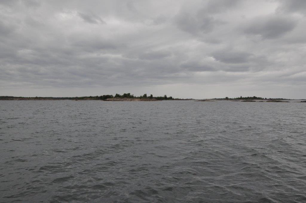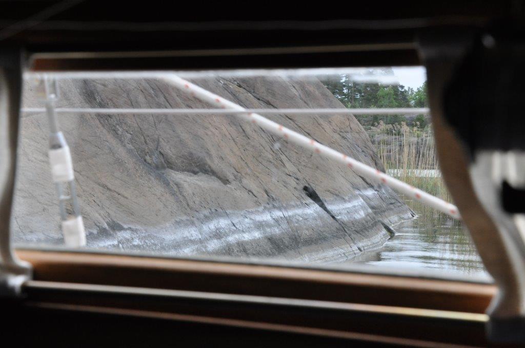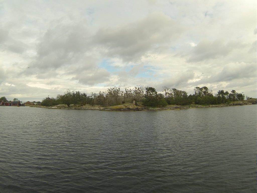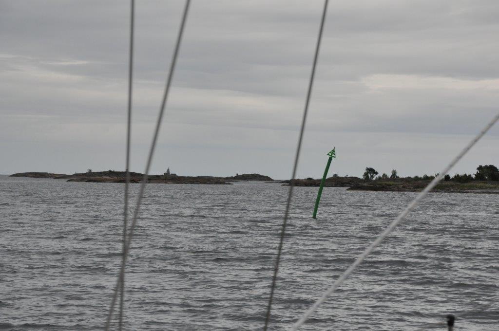 Wir nähern uns wieder der Ostsee. Die Inseln sind spärlicher bis gar nicht bewachsen und der Blick kann wieder frei bis zum Horizont schweifen. Wir biegen in das parallel zu Küstenlinie verlaufende Fahrwasser ein und kommen gut gen Norden voran. Die kleinen Tonnen wechseln sich regelmäßig mit Leuchttürmen ab, von denen jeder einen Namen hat. Die Seekarte kennt sie alle und zeigt sogar deren Kontur und Anstrich. Das Fahrwasser ist teilweise so breit wie die Größe Breite (Schlei) und an anderen Stellen sind wir aufgrund der Enge froh, dass kein Gegenverkehr kommt. Kurz vor Fyrudden gibt es noch einen kräftigen Schauer. Wir hatten heute ja noch nicht geduscht. In Fyrudden legen wir gleich zweimal an: Unser erster Liegeplatz hat keinen Landstrom, so dass wir nach kurzem wieder „Leinen los“ sagen und an einer anderen Stelle festmachen. Hier gibt die volle Versorgung. Strom, Wasser und einen Supermarkt in 30 Meter Entfernung. Was wollen wir mehr. (Text Michael)