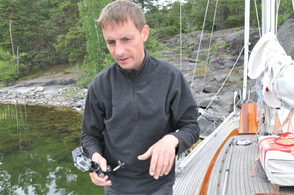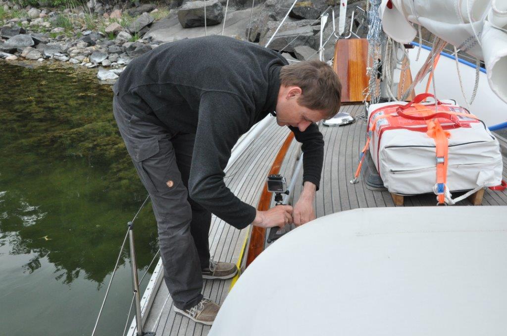 Über Nacht ist der Pegel gesunken. JANNE lässt sich zwar noch schaukeln, wir beeilen uns aber dennoch und wollen zügig ablegen. Vorher wird der Freiraum unter dem Kiel noch mit einer wasserdichten Kamera überprüft: Viel Platz ist nicht mehr. Glück gehabt.