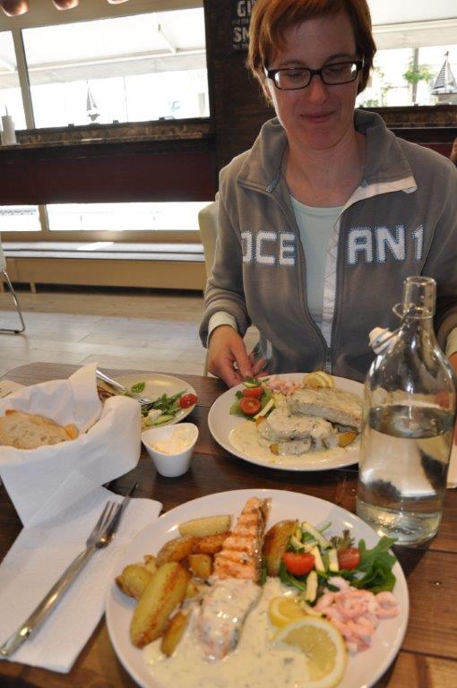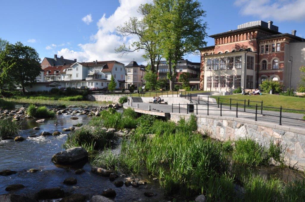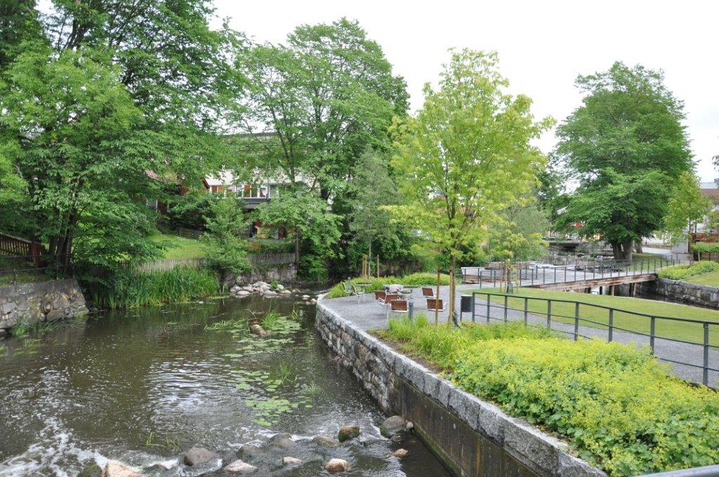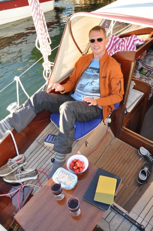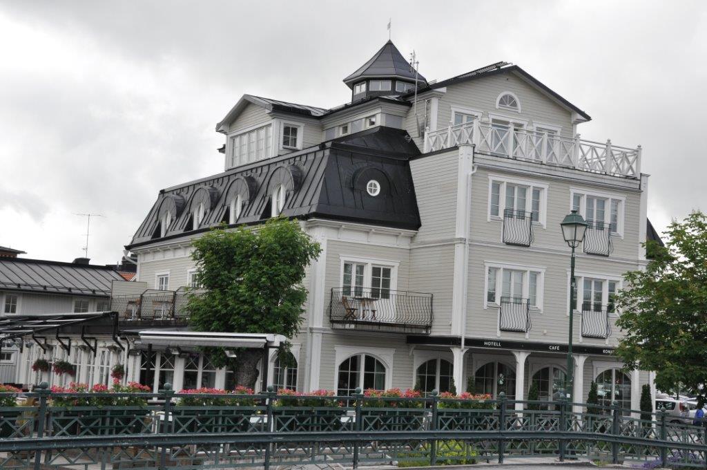 Eine schmuckes Städtchen, das uns sehr gefällt. Viele renovierte Holzhäuser, gemütliche Cafés, zwei urige Pubs, ein Fischrestaurant mit sehr leckerem Fisch, ein plätschernder Bach mit gemütlichen Ecken und ein Systembolaget. Ein ganzer Laden nur für alkoholische Getränke über 3,5 % vol. Wir hatten uns schon über die türkisfarbenen Tüten gewundert, die jeder zweite Passant bei sich trug. Perfekt. Nun können wir unseren wirklich spärlichen Weinvorrat auffüllen (beim Bunkern in Kappeln saß uns die Zeit im Nacken) – schließlich steht Midsommar vor der Tür. Und man weiß ja nie…