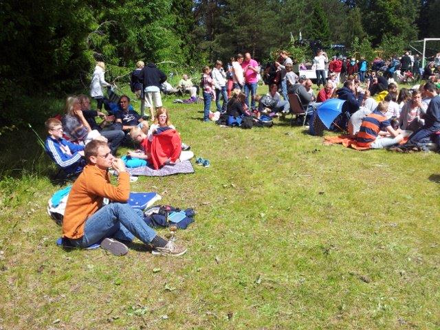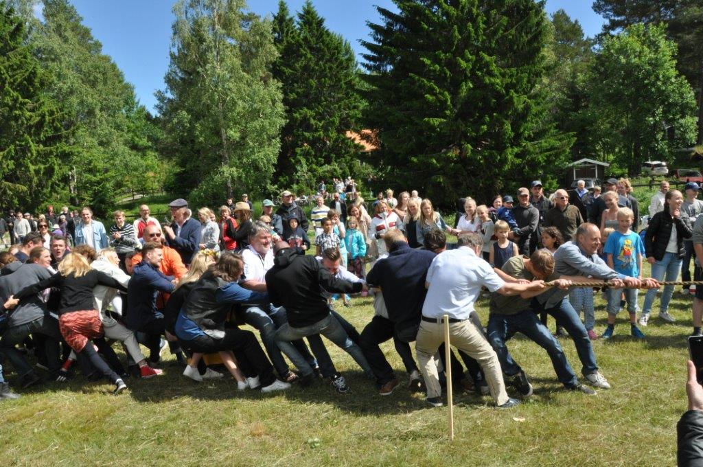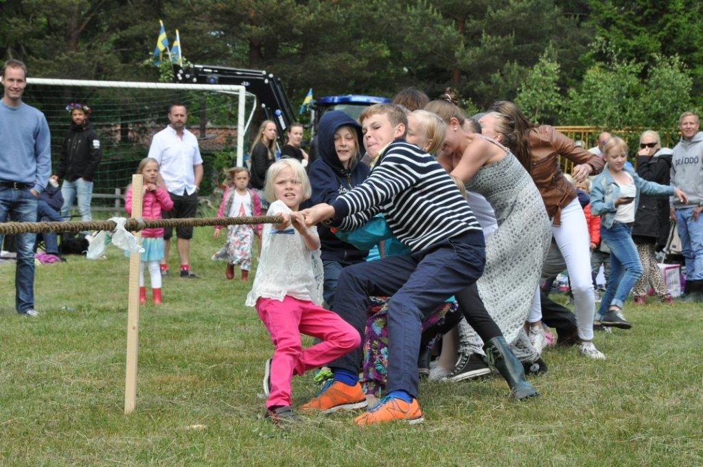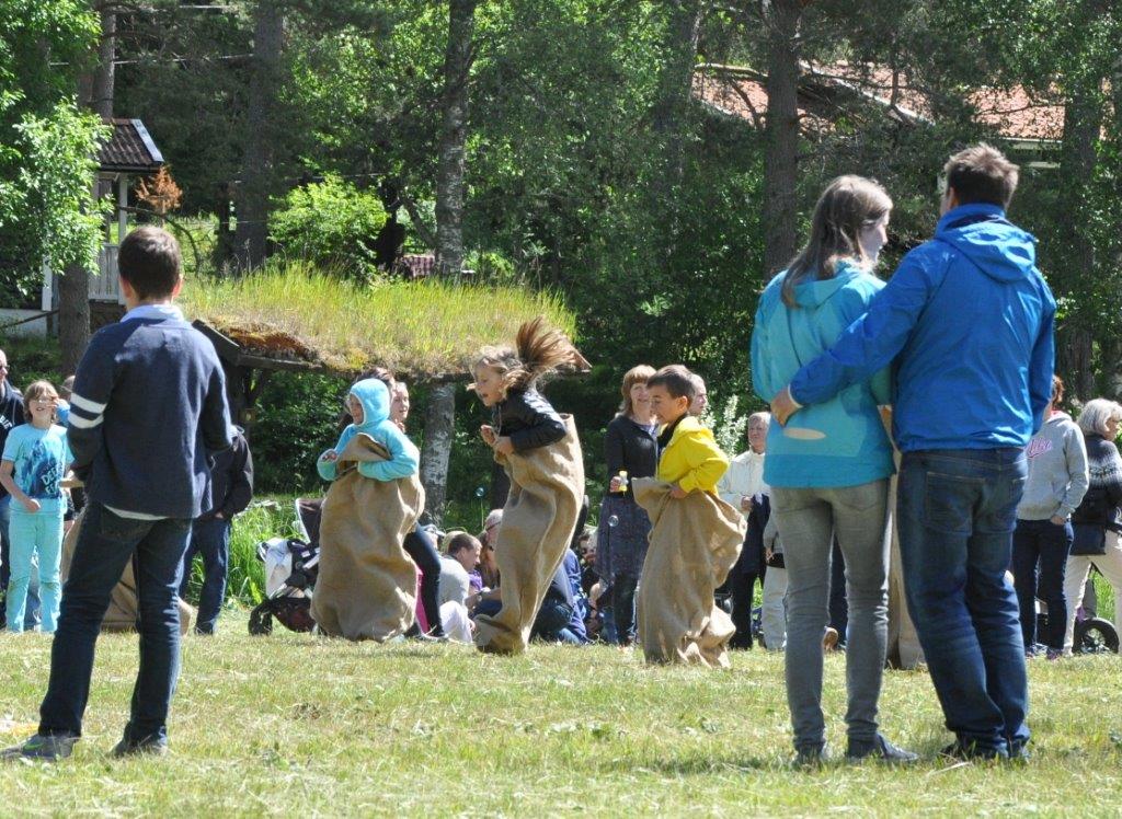 Nach den diversen lustigen Ringeltänzen gab es Sackhüpfen und zum krönenden Abschluss Tauziehen zwischen den 365-Tage-Bürgern (z.B. Eltern) und den Besuchern (z. B. große Kinder aus Stockholm).
