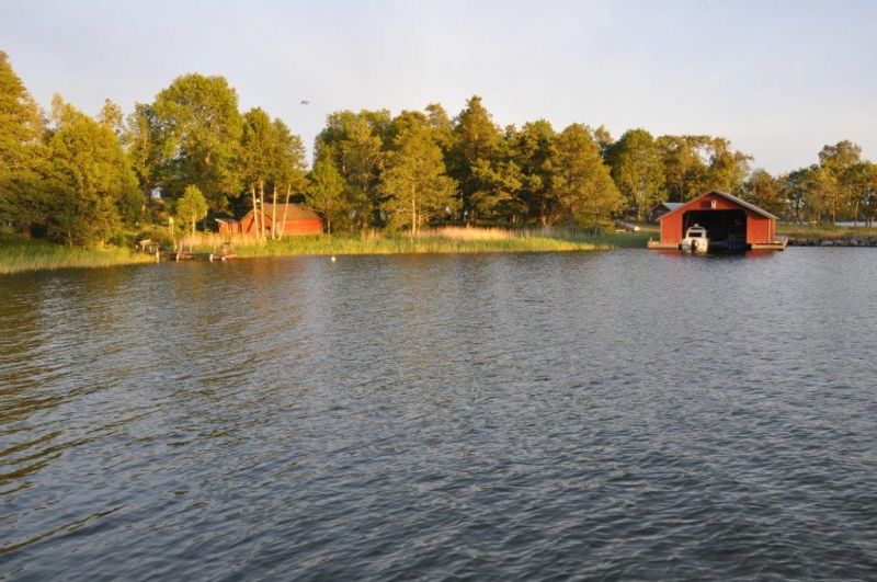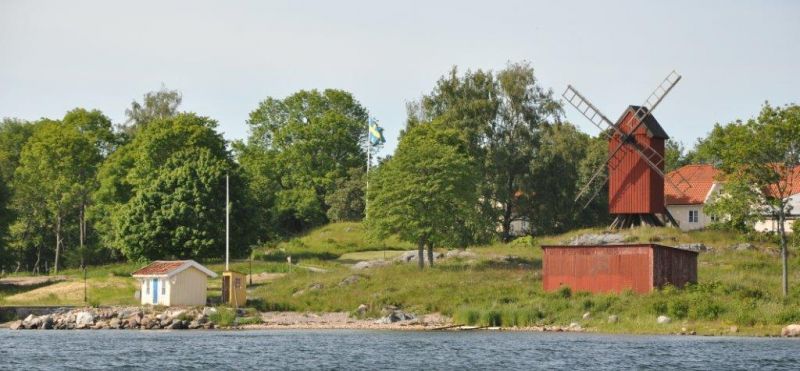 Wir setzen das Groß und das Vorsegel nehmen wir halb raus. Der Wind hat die Vorhersage nicht gelesen und macht in dem engen Fjord was er will: Seine Stärke variiert zwischen 3 und 14 kn; dazu dreht er dermaßen, dass wir über 30 Grad abfallen bzw. an den Wind gehen müssen. Bei diesen Bedingungen kreuzen wir mit JANNE durch den Norrtäljeviken Richtung Osten. Über uns zieht ein großer Greifvogel seine Bahn. Bereits in Gräddö hatten wir einen beobachten können. Leider ist er sehr schnell und wir können ihn nicht fotografieren.