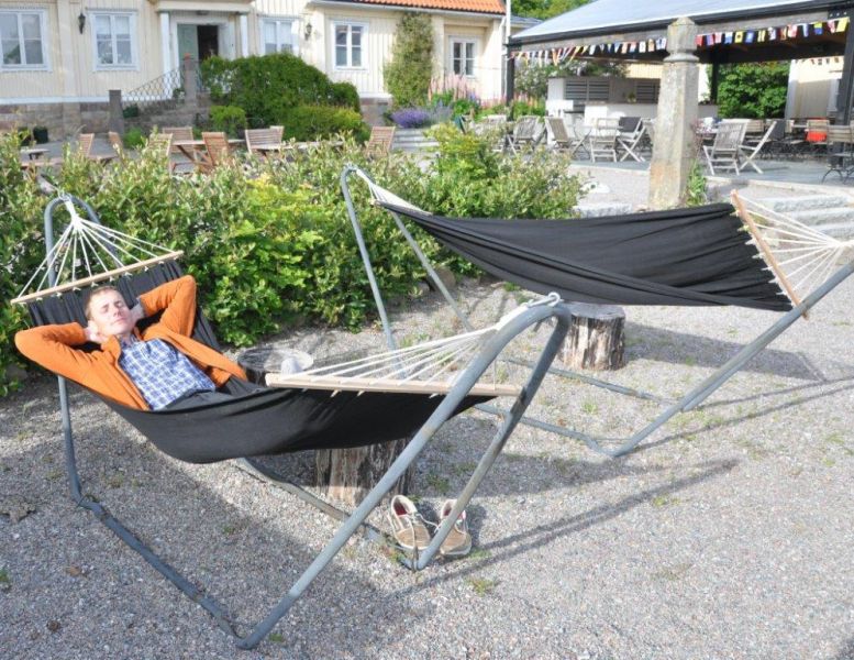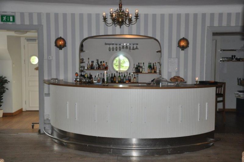 Unsere Liegegebühr bezahlen wir in dem Krog, welcher laut Hafenhandbuch eine gute Küche haben soll. Große gepflegt Anlage, bequeme Liegemöglichkeiten auf der Terrasse, nette Musik; man könnte glatt auf ein Bier bleiben.