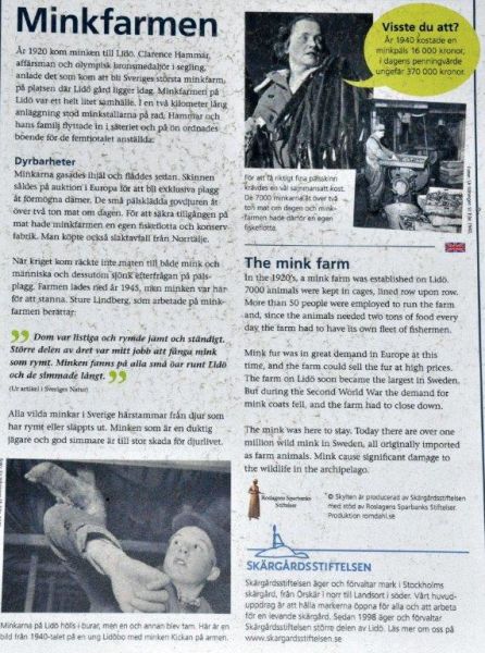 Auf Lidön gab es in den 40er Jahren des letzten Jahrhunderts eine große Nerzfarm. Einige kleine Gebäude wurden renoviert und werden für Pferde sowie land-/forstwirtschaftliche Geräte genutzt.