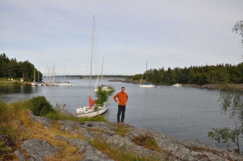 Dennoch müssen wir aufpassen – wir sind schließlich in den Schären: Bei der Untiefentonne nördlich von Gyltan wollen wir abkürzen. Wir übersehen dabei fast eine Schäre, die nur wenige cm aus demWasser ragt. Zum Glück entdeckt Fio die Schäre noch rechtzeitig und reagiert prompt mit einer Wende in Richtung tiefes Wasser. Gut aufgepasst!