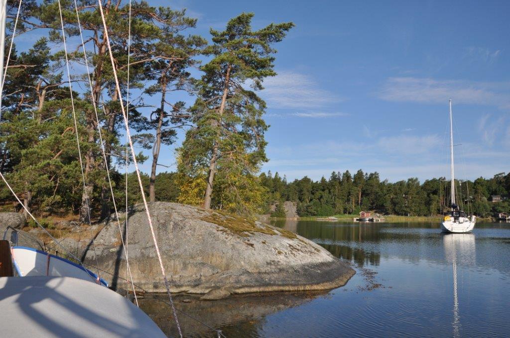 Unsere Tagesstrecke von der kleinen Ankerbucht bei Lille Marskär nach Nynäshamn beträgt weniger als 4 sm. Luftlinie wären es sicher unter einer halben sm. Die kurze Strecke schaffen wir in weniger als einer Stunde. Unser Plan geht auf, denn bereits beim Anlaufen von Nynäshamn kommen uns viele Segelboote entgegen. So bekommen wir sicher einen Liegeplatz in dem zwar großen, aber gut besuchten Hafen. Wir legen bereits vor 11:00 Uhr an.