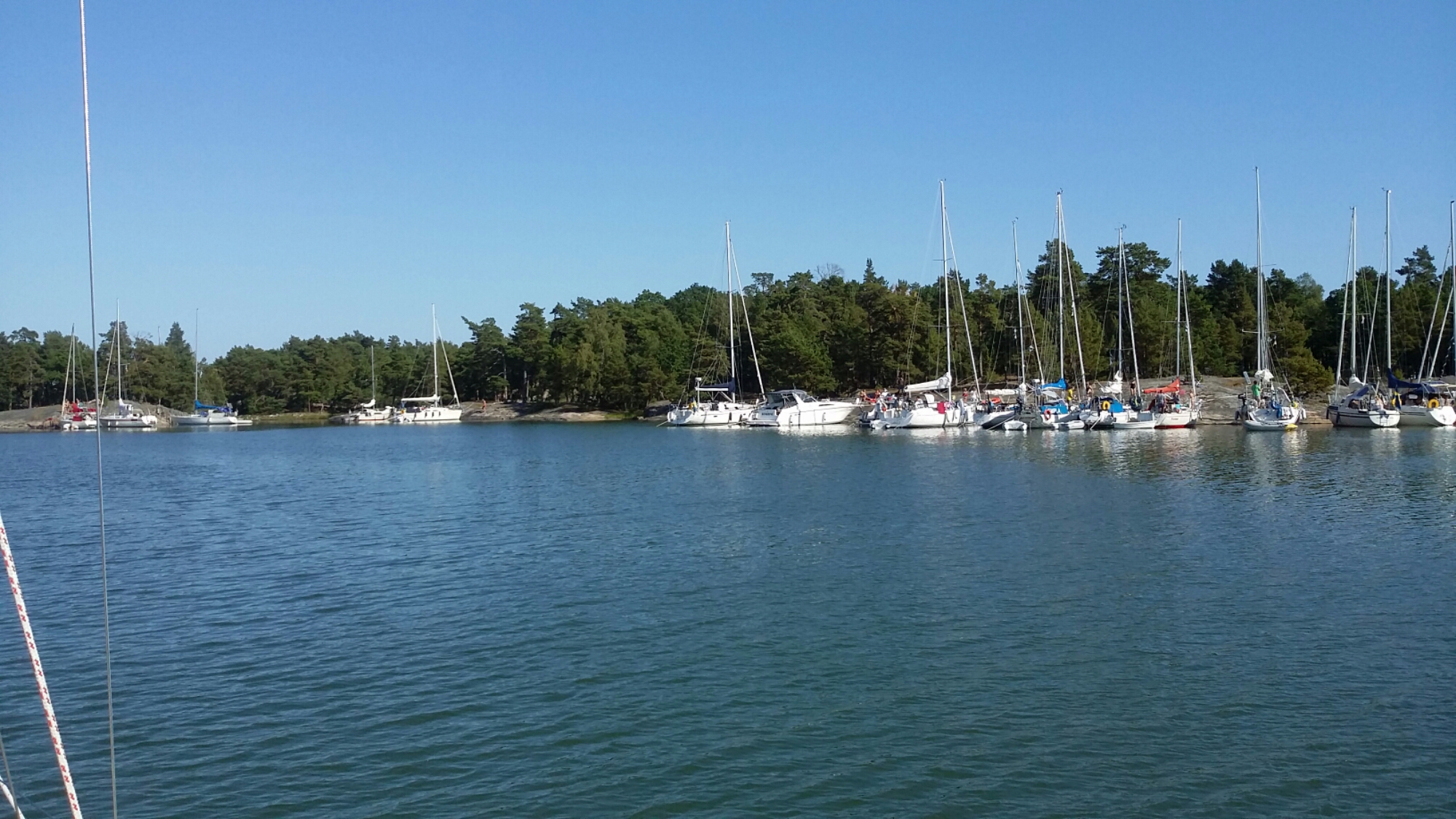 Um uns herum liegen viele schwedische Yachten und es klingt wie in einer Badeanstalt, da so ziemlich alle im Wasser sind.