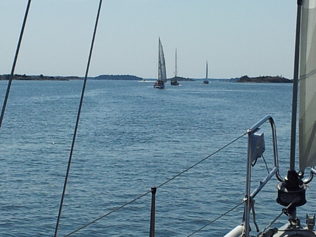 Viel Verkehr im Fahrwasser von Arkö, Insel Risö, gen Süden nach Valdemarsvik. Wir biegen nach Osten ab zur Insel Harstena.
