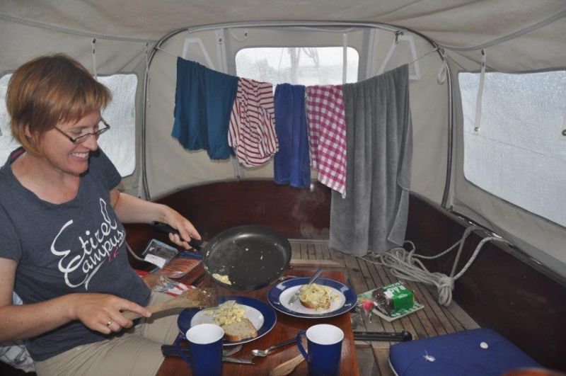 Nun um 9:15 Uhr tobt sich ein gewaltiges Gewitter über uns aus. Ist aus dem Süden gekommen. Nach dem Frühstück und nach dem Regen haben wir noch einige Aufgaben zu erledigen: Diesel- und Wasservorräte auffüllen sowie das Banana-boot auseinander bauen und verstauen. Den Großeinkauf und zwei Wäscheladungen haben wir schon gestern erledigt. Das liebevoll zusammengestellte Schifffahrtsmuseum hat uns gut gefallen. Micha war auf der Überführungstour mit EUFEMIA schon mal hier. Schöne Erinnerungen.