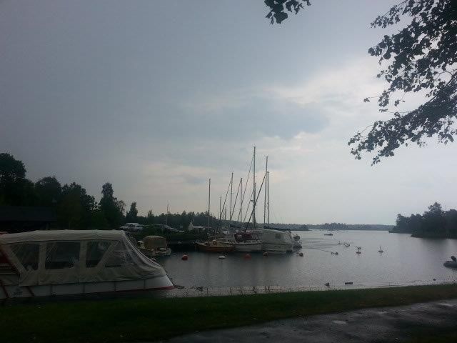 Am gestrigen Abend hohe Luftfeuchtigkeit, Gewitter in Sichtweite und dann eine ruhige Nacht im schönen Figeholm, kleiner Hafen.