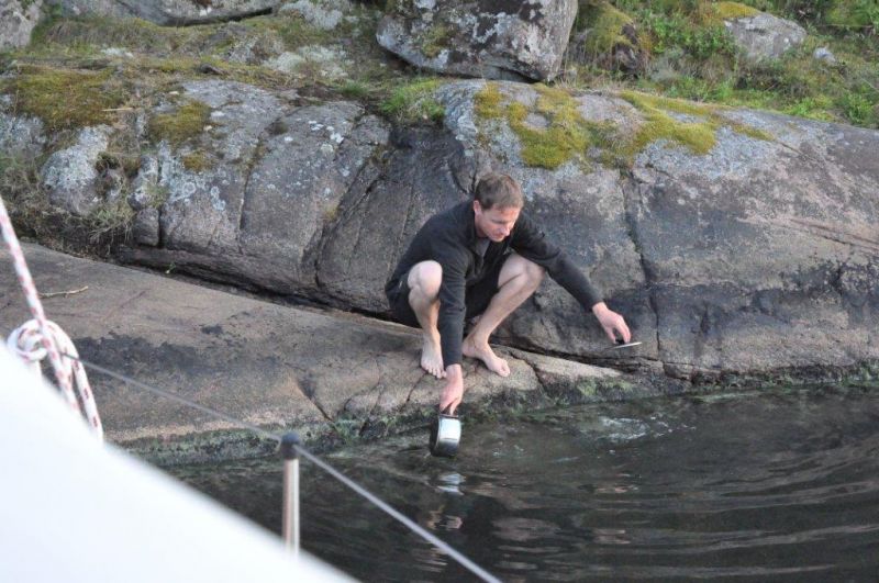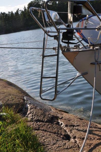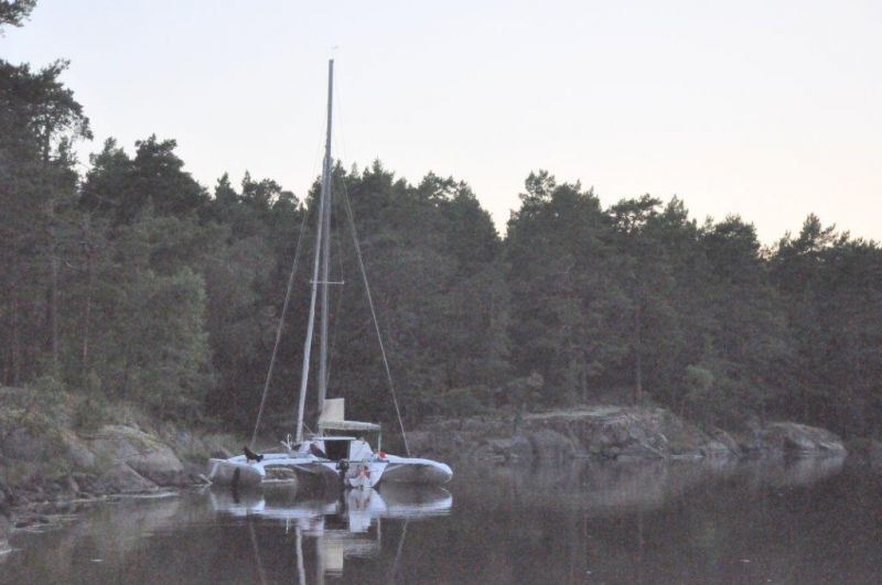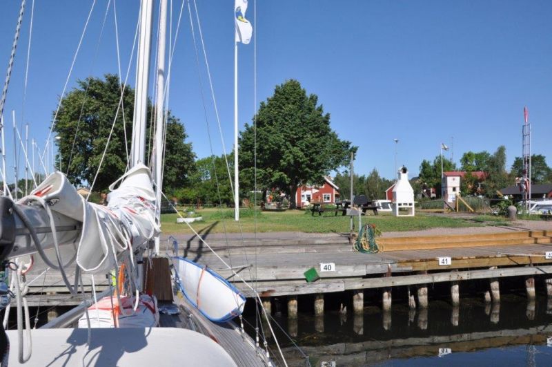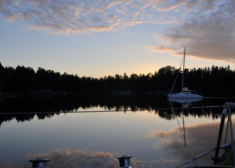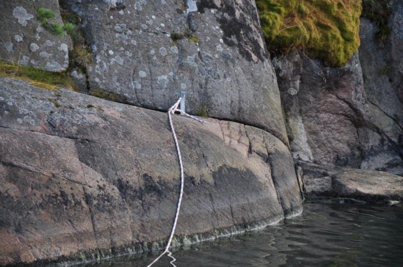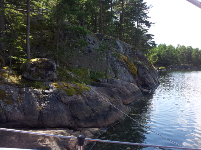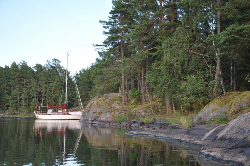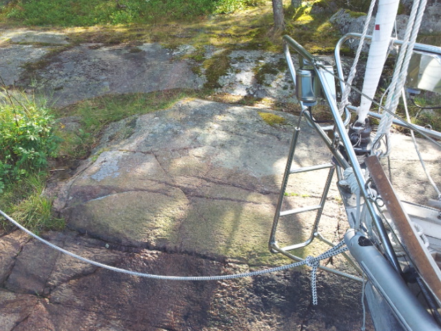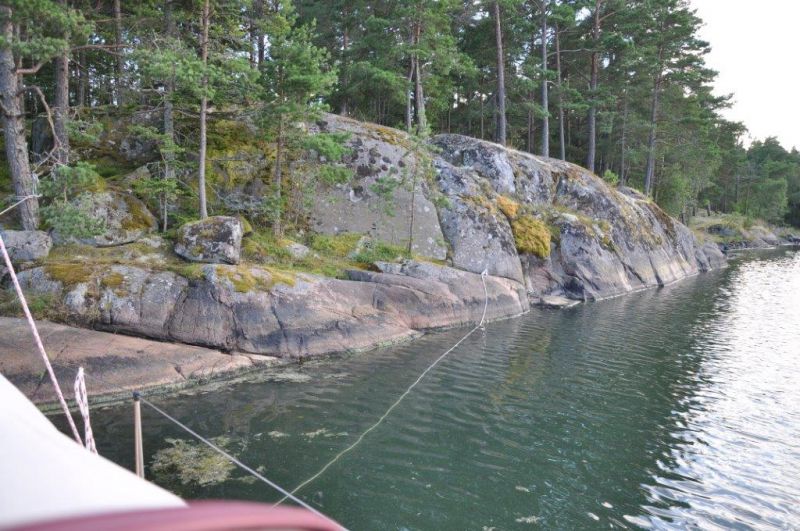 Unser Naturhafen an der Halbinsel Näset, südlich von Oskarshamn. Liegen mit Heckanker und drei Leinen am Felsufer.