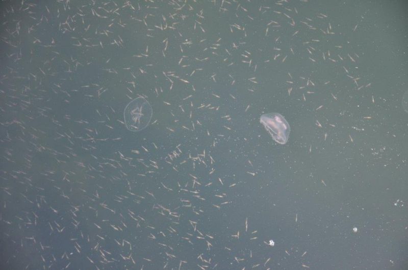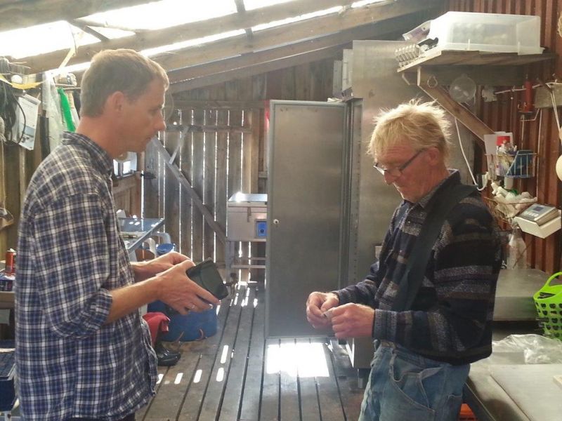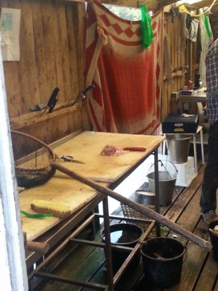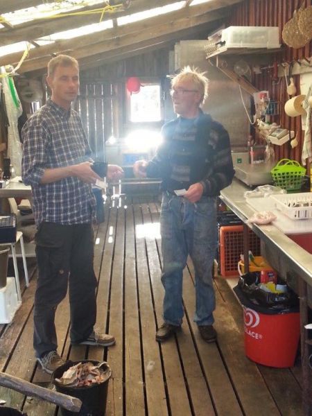 Uriger Fischer verkauft frischen Fisch aus der Fischzucht in der Bucht.