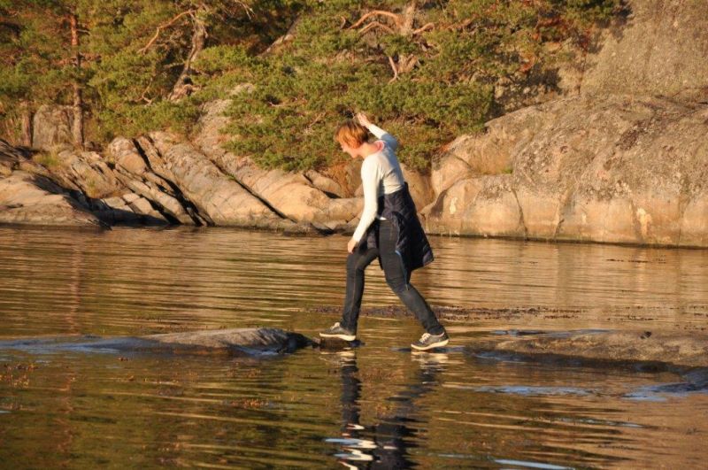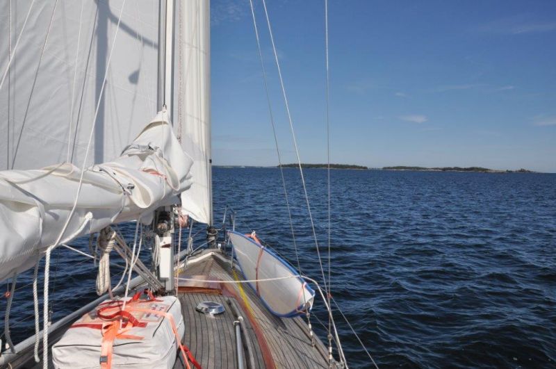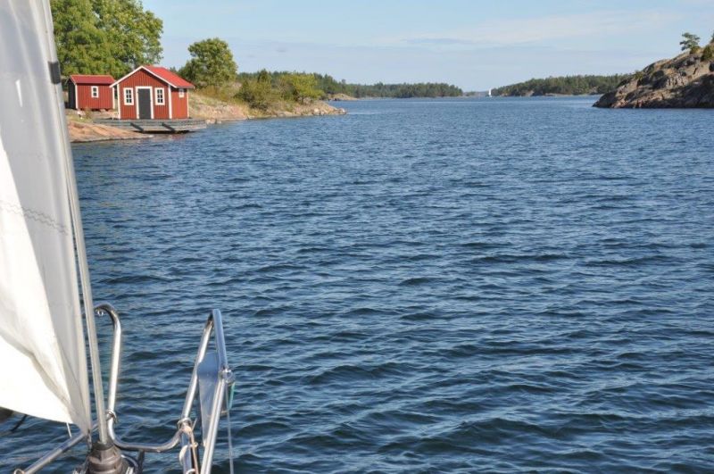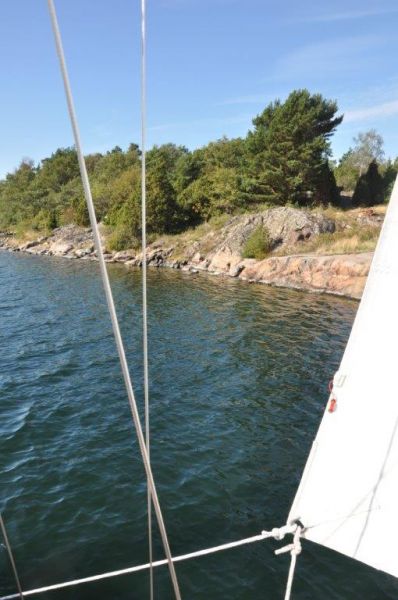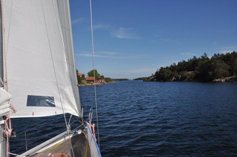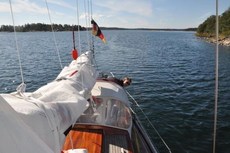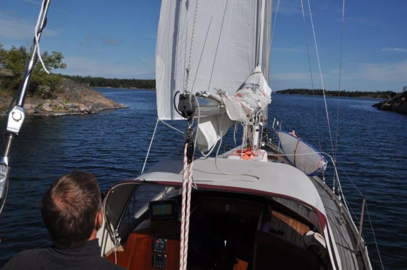 Bei achterlichen Winden nur mit Vorsegel durch die Schären.
