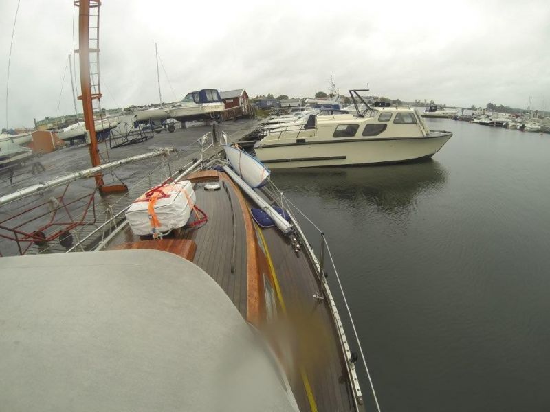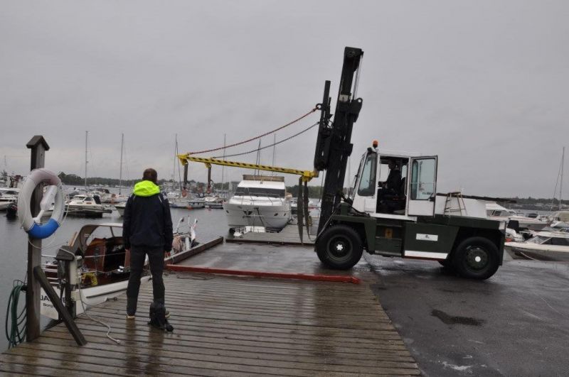 Doch es gibt noch etwas Positives: Uns wird ein Sommerliegeplatz für die kommende Saison direkt bei der Werft angeboten. Die Liegeplätze haben Ausleger an Schwimmpontons und sind somit sehr geeignet. Strom, Wasser und Dusche sind auch vorhanden. Der Hafen ist als Liegeplatz gut geeignet und ein schöner Startpunkt in die Schärenwelt.