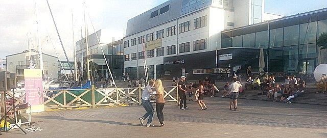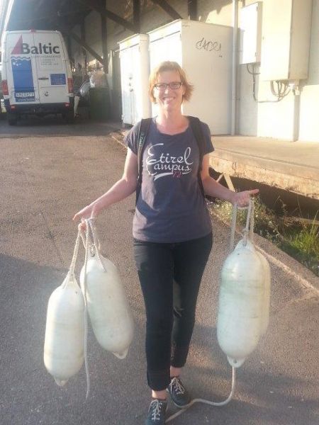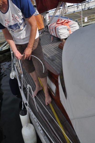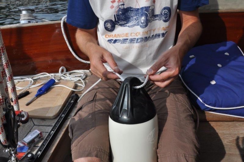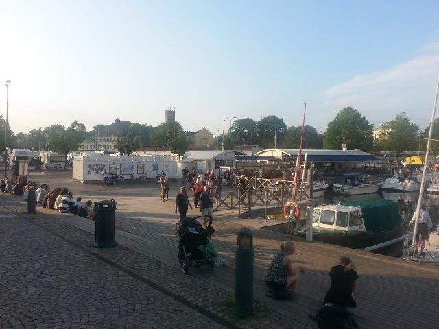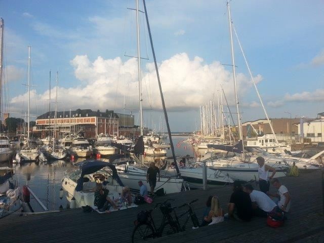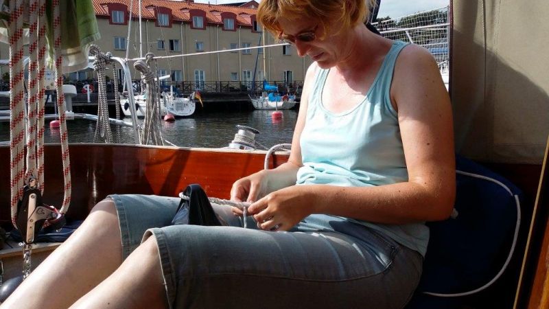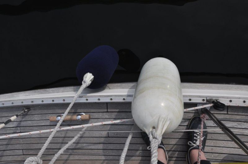 Neben weiteren E-Mails und Telefonaten genießen wir die sommerliche Stadtfest-Atmosphäre. Außerdem erhält JANNE vier neue, kleine Fender und zwei Fender-Überzüge. Mit sechs großen Fendern war die Backskiste zu voll und die Dinger sind unhandlich. Nun haben wir einen guten Kompromiss gefunden. Mit den alten Fendern können wir dem Verkäufer eine Freude bereiten: Spende für einen Kindergarten, der ein Spielschiff bekommen soll, mit Gegenständen aus dem Marineshop.